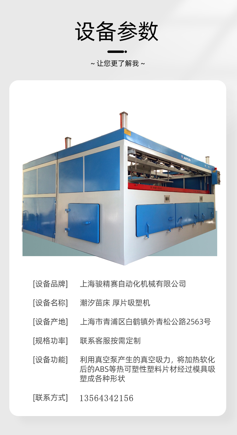 相關(guān)推薦 汽車(chē)門(mén)板內飾全自動(dòng)厚片吸塑機 種植養殖苗床厚片吸塑成型設備 廠(chǎng)家供應咨詢(xún)客服可免費試樣工藝 潮汐苗床厚片吸塑機 皮卡車(chē)貨箱寶厚片吸塑機